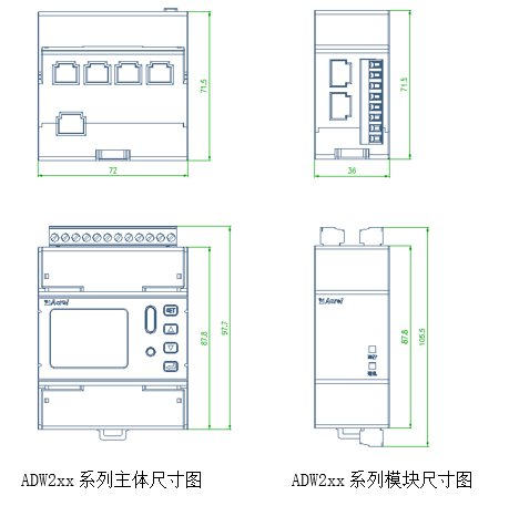 ADW2xx系列導軌式多回路電力儀表方便用戶進行用電監測、集抄和管理。可靈活安裝于配電箱內,實現對不同區域和不同負荷的分項電能計量,統計和分析。訂貨范例: