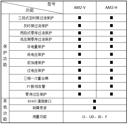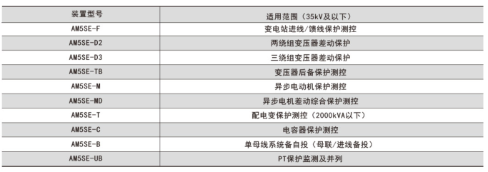 | AM6-D2 變壓器差動保護裝置(二繞組) | 110kV及以下電壓等級容量為6300kVA及以上的變壓器 |