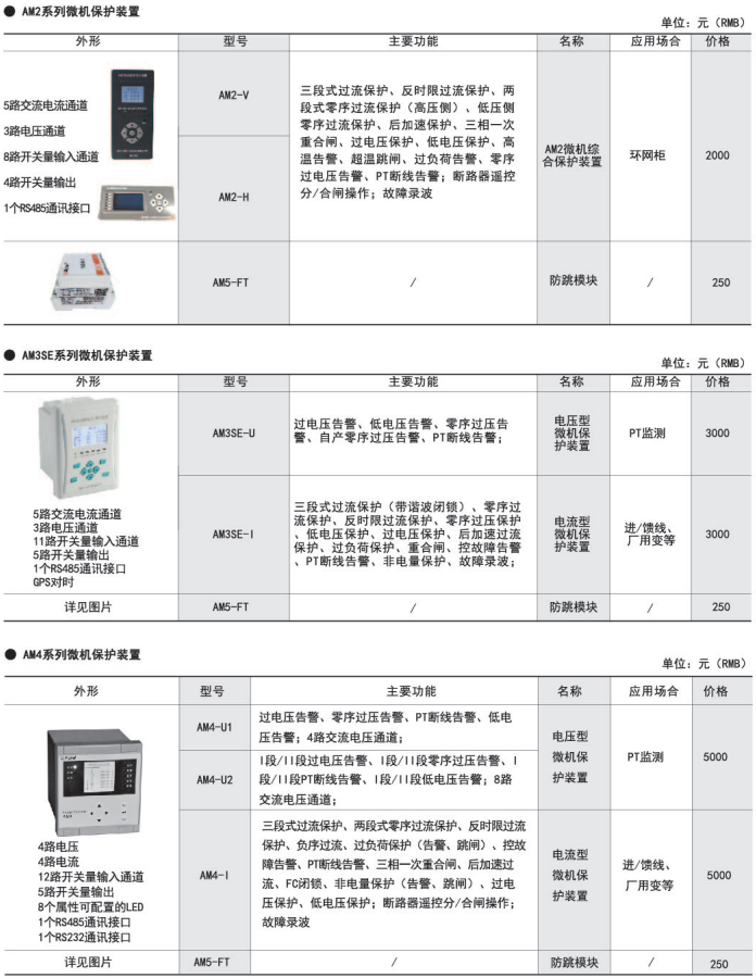 | AM3-I 電流型微機保護裝置 | 進/饋線、廠用變、電動機等 |