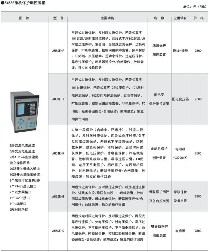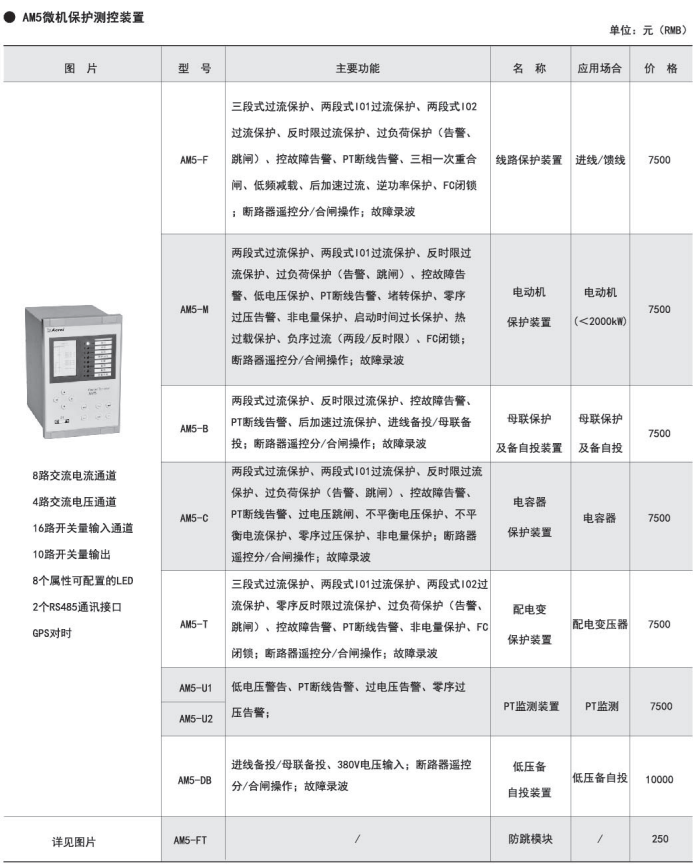 | AM5-F 線路保護測控裝置 | 進/饋線 |