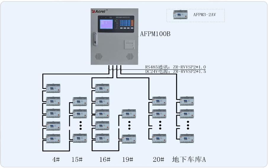 本項目設計范圍為吉祥e家小區4#、15#、16#、19#、20#及地下車庫A消防電源回路。安科瑞電氣股份有限公司為吉祥e家小區設計一套消防設備電源監控系統,系統通過對吉祥e家消防設備的供電電源的故障和異常狀態進行監控,及時報警提醒相關人員消除這些隱患,防止發生火災時,消防設備無電可用,設備不能正常投入使用,保障消防聯動系統的可靠性。