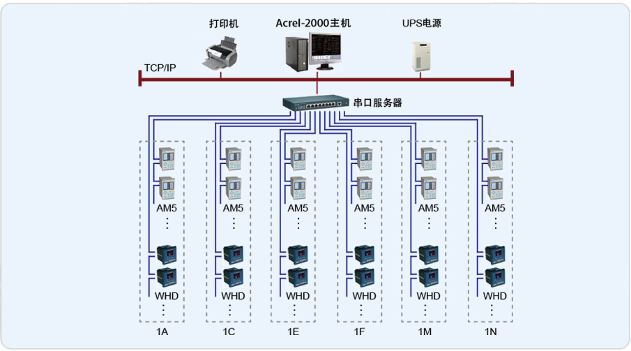 監(jiān)控系統(tǒng)主要監(jiān)控多晶鑄20kV高壓、0.4 kV低壓,該系統(tǒng)總計(jì)有159只儀表(其中包括142只進(jìn)線(xiàn)保護(hù),2只PT保護(hù)、8只變壓器保護(hù)、6只溫控儀),共10條總線(xiàn),低壓變電所和高壓室離值班室距離不遠(yuǎn),直接采用屏蔽雙絞線(xiàn)連接至串口服務(wù)器,再通過(guò)網(wǎng)線(xiàn)連接到網(wǎng)絡(luò)交換機(jī)上,監(jiān)控主機(jī)通過(guò)網(wǎng)絡(luò)交換機(jī)實(shí)現(xiàn)總線(xiàn)上儀表與監(jiān)控主機(jī)的數(shù)據(jù)連通。