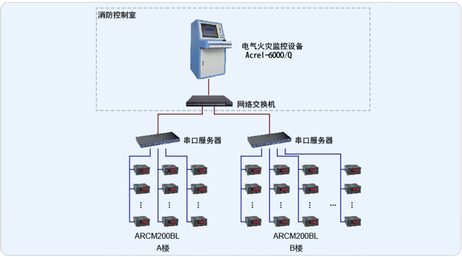 該項(xiàng)目中廠區(qū)內(nèi)分布的安科瑞剩余電流式電氣火災(zāi)監(jiān)控探測(cè)器ARCM200BL,通過(guò)RS485總線與2臺(tái)監(jiān)控設(shè)備通訊,采用了Acrel-6000/Q系統(tǒng)組態(tài)軟件,實(shí)現(xiàn)了對(duì)被保護(hù)電氣線路的安全監(jiān)視、控制及管理,提高了電氣火災(zāi)隱患的排查效率,具有集中調(diào)度、控制、保護(hù)、監(jiān)視、顯示等功能,集用電安全管理、分析、記錄于一體智能化優(yōu)點(diǎn),為公司提供了安全保障。
