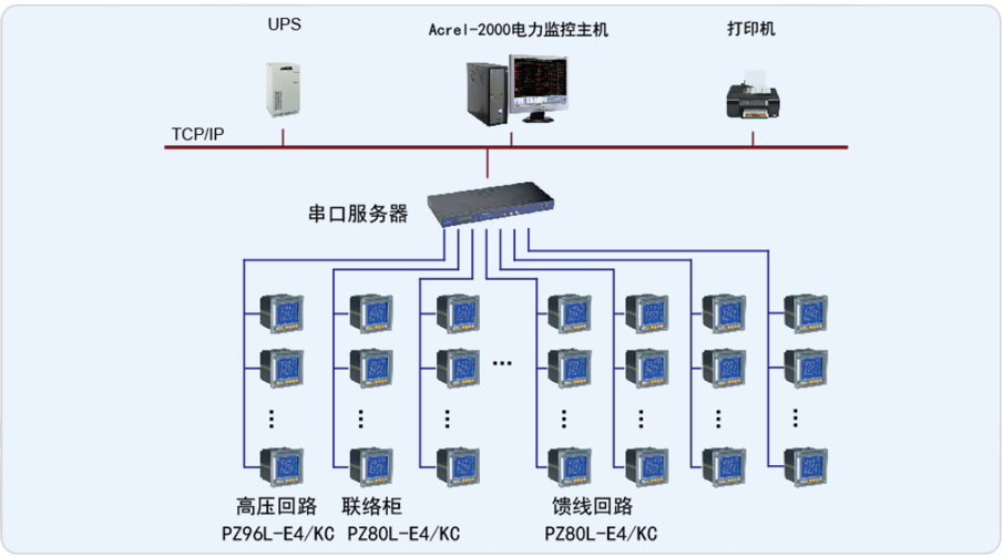 安科瑞電氣股份有限公司于2012年9月承接了現代海門制藥電力監控系統的設計與實施。系統采用Acrel-2000電力監控系統,實現了對高壓配電回路安裝的安科瑞PZ96L-E4/KC儀表及低壓進線、聯絡、饋線回路安裝的PZ80-E4/KC儀表進行遠程監測,整個系統采用分層絡分布式結構,實現了對海門制藥用電運行的遠程監控和集中管理。