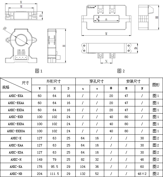 具體型號:AHKC-EKAA DC300A/4-20mA● 開口式開環(huán)霍爾電流傳感器