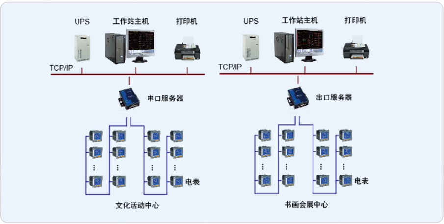 本次項目監控范圍為文化活動中心、書畫會展中心部分,通過安裝安科瑞PZ72系列多功能儀表,以滿足他們電能計量的需求。安科瑞電氣股份有限公司于2015年為其配置一套Acrel-2000電力監控系統,通過組建系統網絡,實時監測變電所內各個回路的電流、電壓、功率、開關狀態等電參量,由此達到變電所少人值守或無人值守的智能化管理。