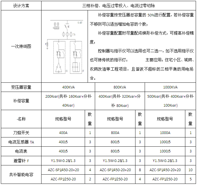 AZC系列智能電力電容補(bǔ)償裝置由智能測控單元、投切開關(guān)、線路保護(hù)單元、低壓電力電容器等構(gòu)成,改變了傳統(tǒng)無功補(bǔ)償裝置體積龐大和笨重的結(jié)構(gòu)模式,是用于節(jié)省能源、降低線損、提高功率因數(shù)和電能質(zhì)量的新一代無功補(bǔ)償設(shè)備。應(yīng)用范圍: