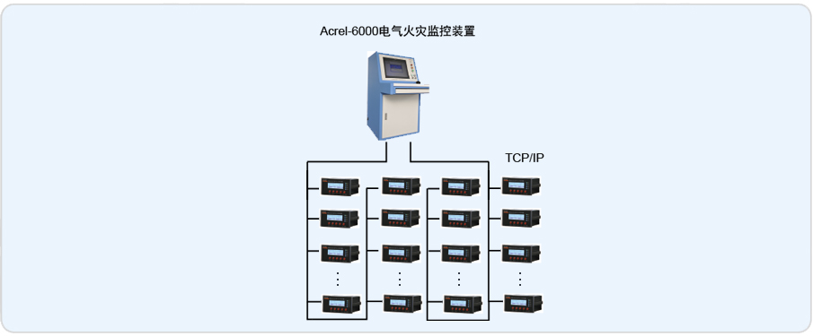 本項目上現(xiàn)場配電箱內(nèi)安裝ARCM200L-J1漏電火災探測器配合AKH-0.66L剩余電流互感器,消防控制室內(nèi)安裝有Acrel-6000電氣火災監(jiān)控主機。安科瑞漏電火災探測器均采用Modbus-RTU通訊協(xié)議,RS-485接口,通過兩條屏蔽雙絞線連接至監(jiān)控主機。